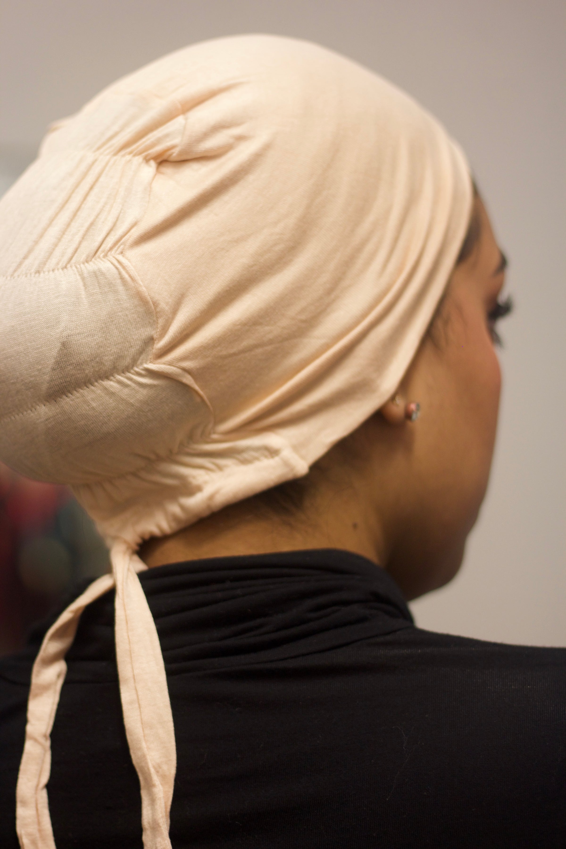 Our ruched underscarf is perfect for you, if you want a breathable, light weight underscarf that you can adjust to your liking. With a ruched back, seamless edge and tie attached to the underscarf. Slip it on, tie it within a matter of seconds.